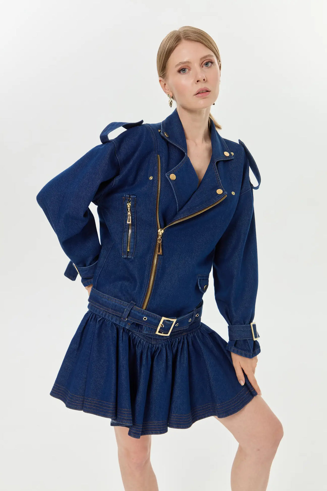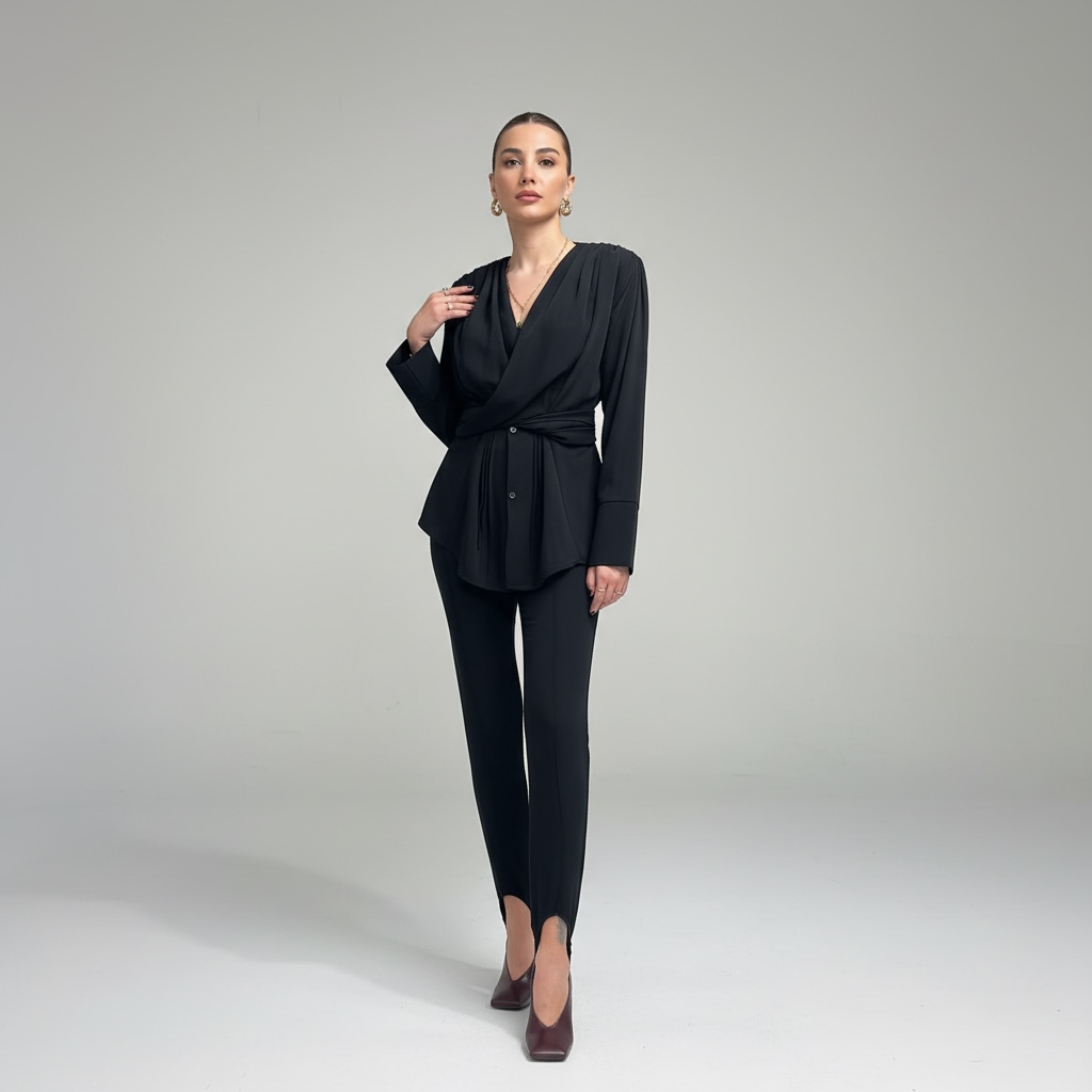 Omuz çizgilerinden düğme detaylarına kadar her noktası kendine güvenen tarzı yansıtır. Sokağın enerjisinden toplantı salonuna, tüm bakışları üzerinde toplayan zahmetsiz şıklık.