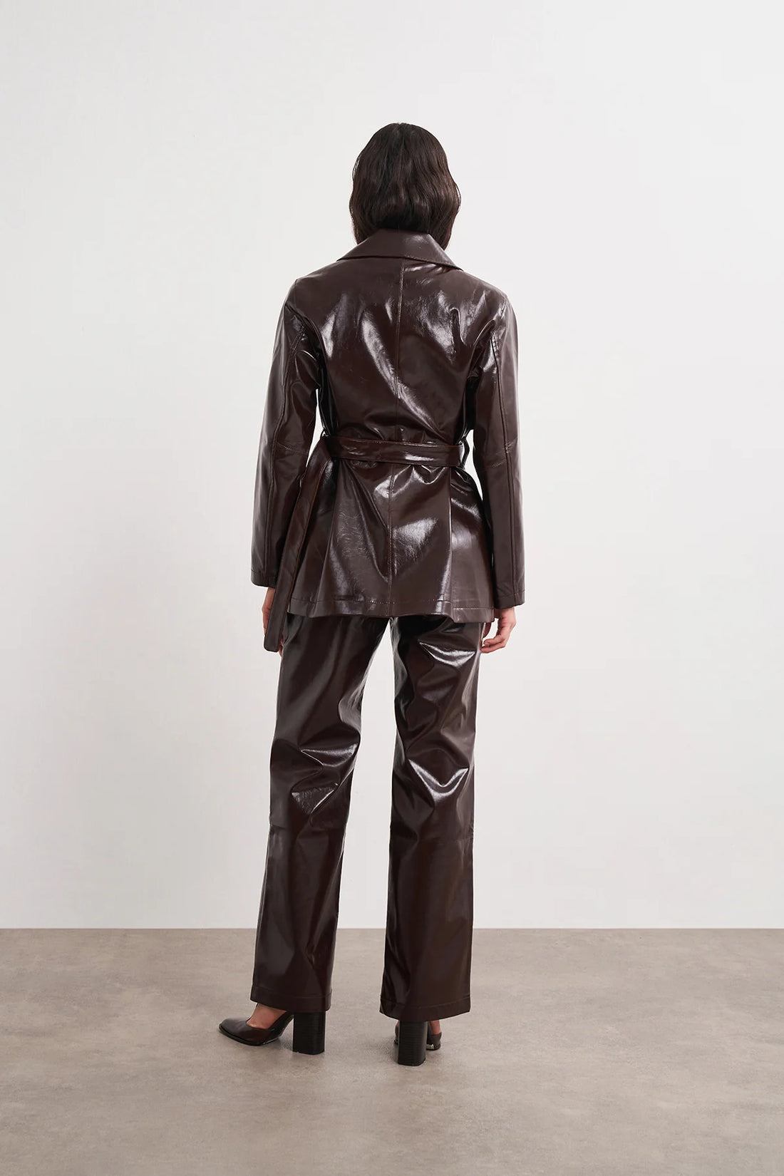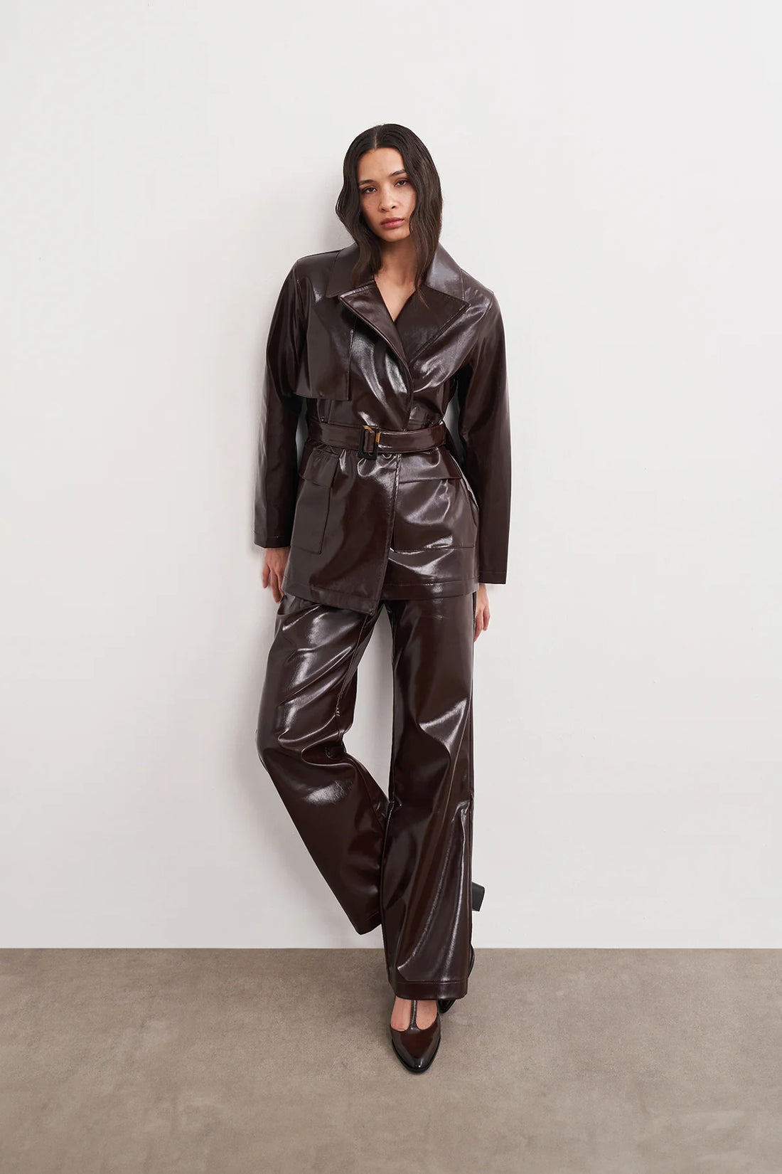 WINGCOTT Acı Kahve Damarlı Deri Pantolon · %100 Suni Deri · Modelin boyu 180 cm'dir....