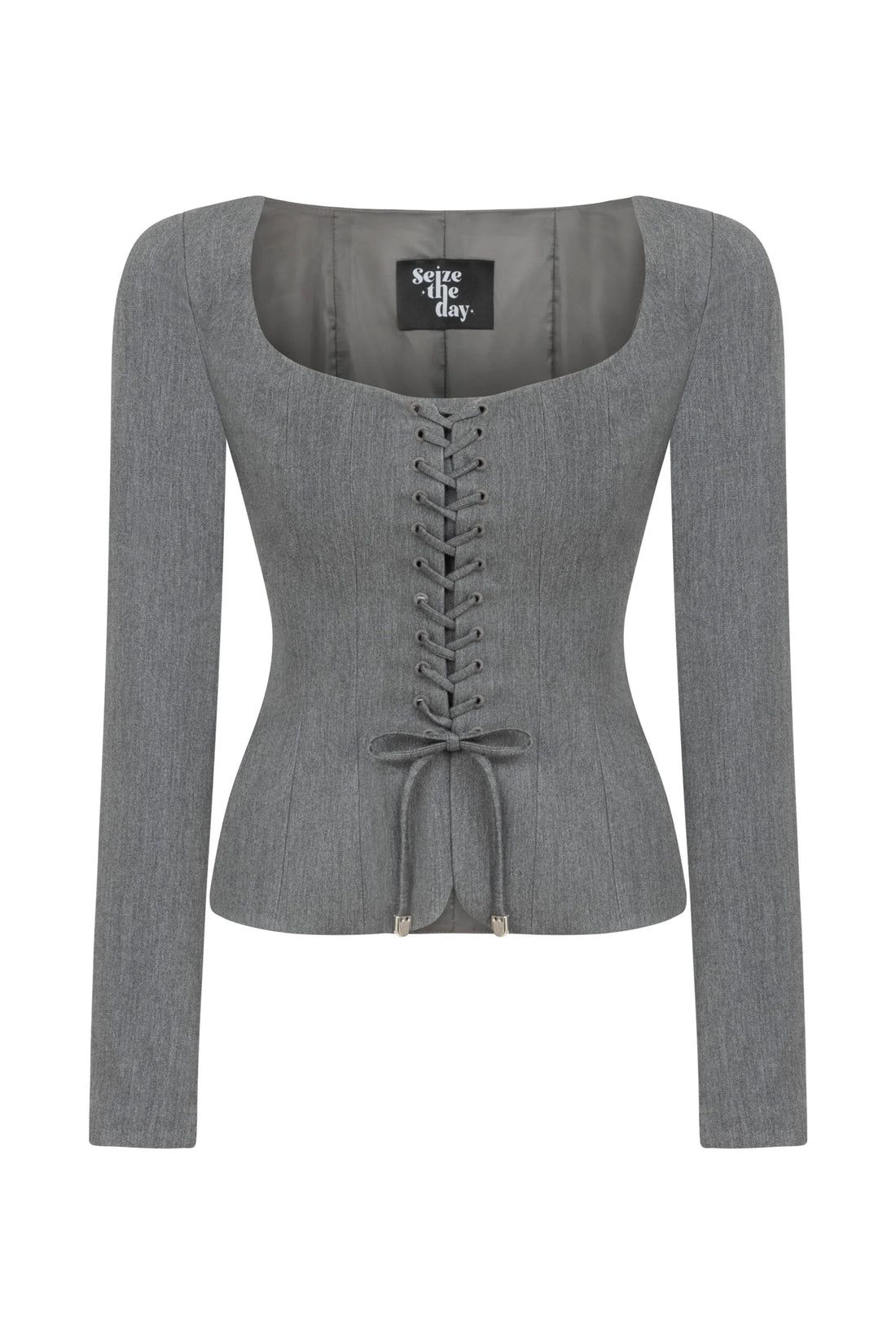 Lisa Top, bağcık detaylı korse tasarımı ve kare yaka yapısıyla cesur bir şıklık sunar. Sırttan...