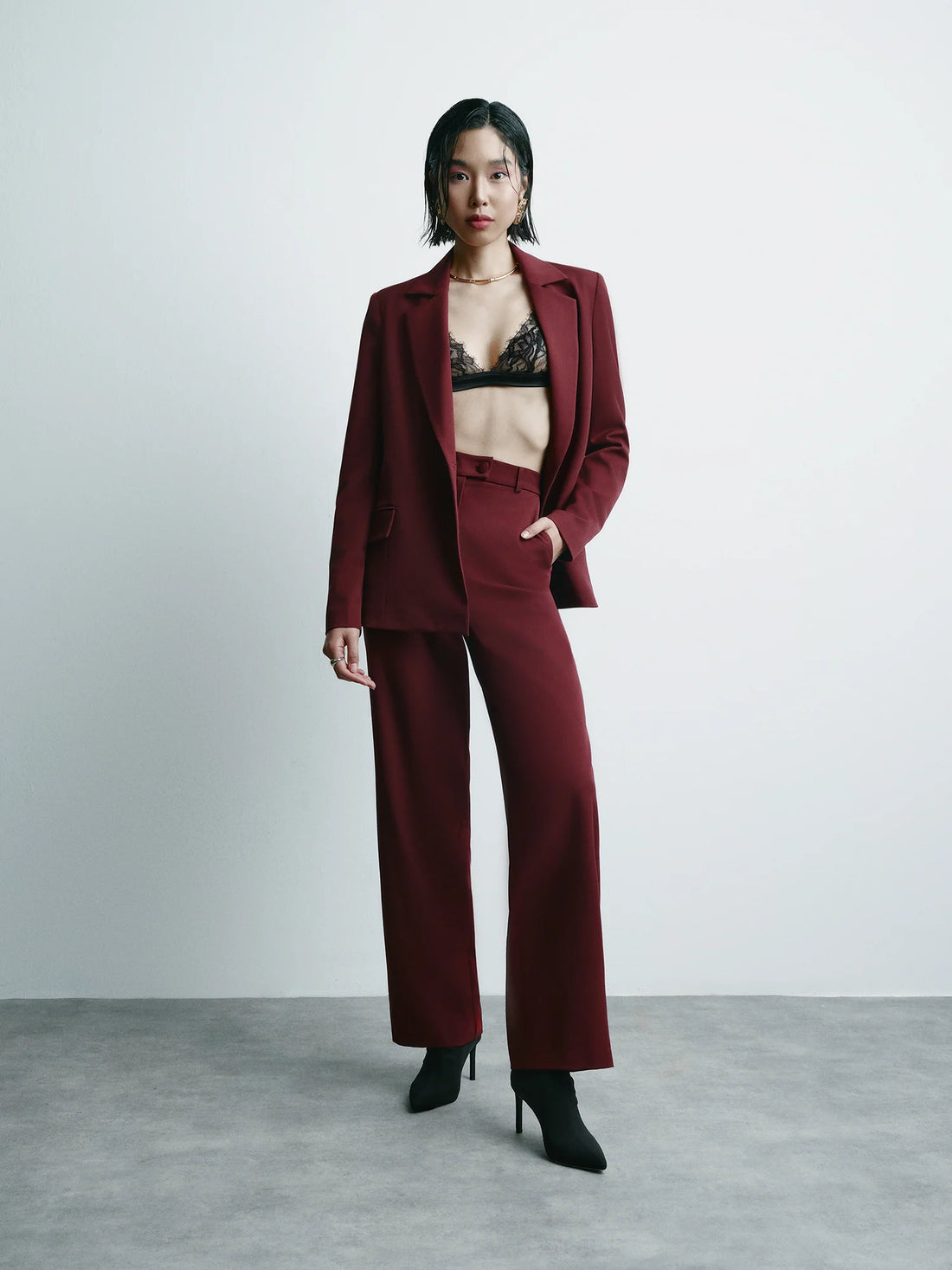 Lisa Blazer, tek düğme oversize kesimi ve arka çift yırtmaç detayıyla modern bir stil sunar....