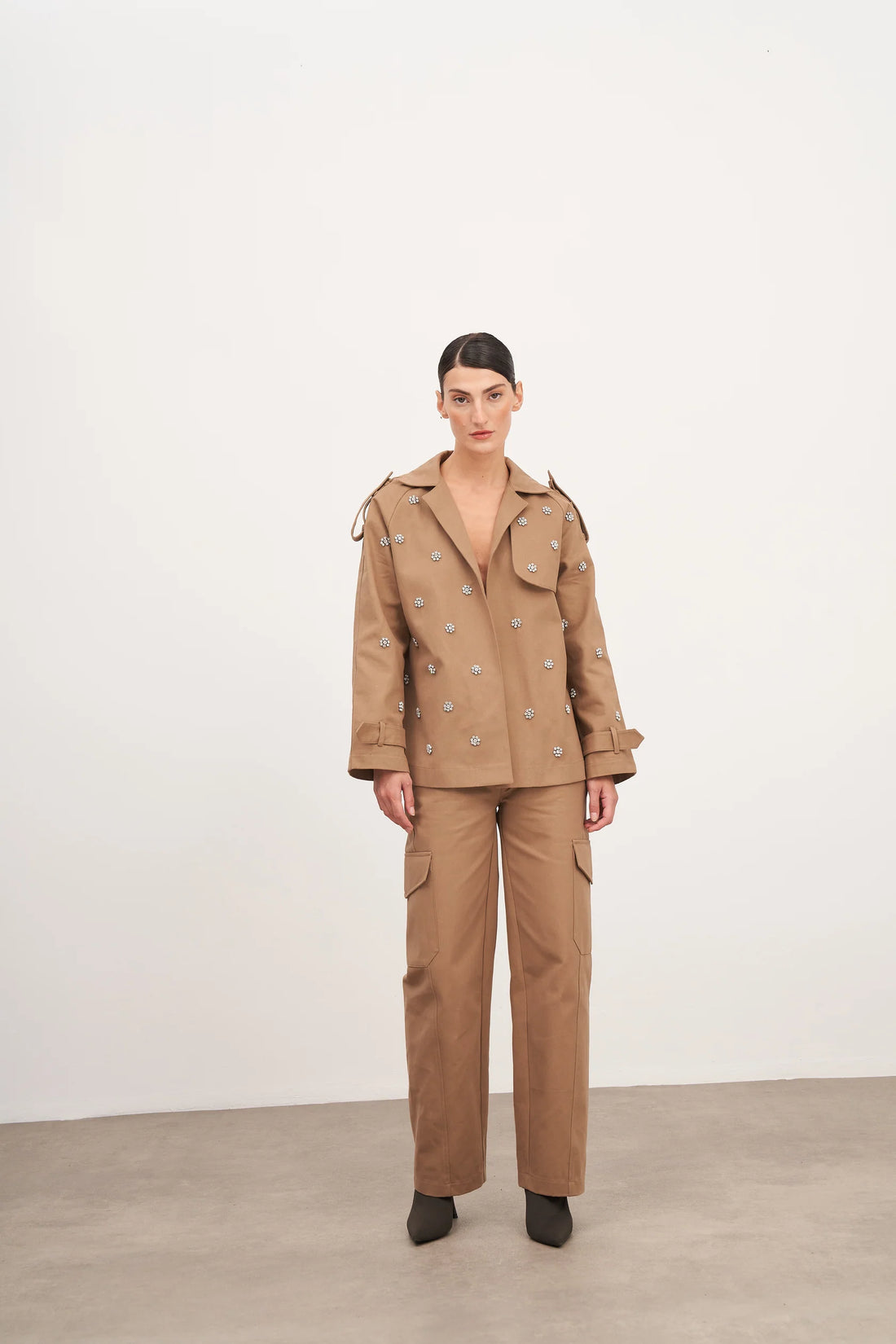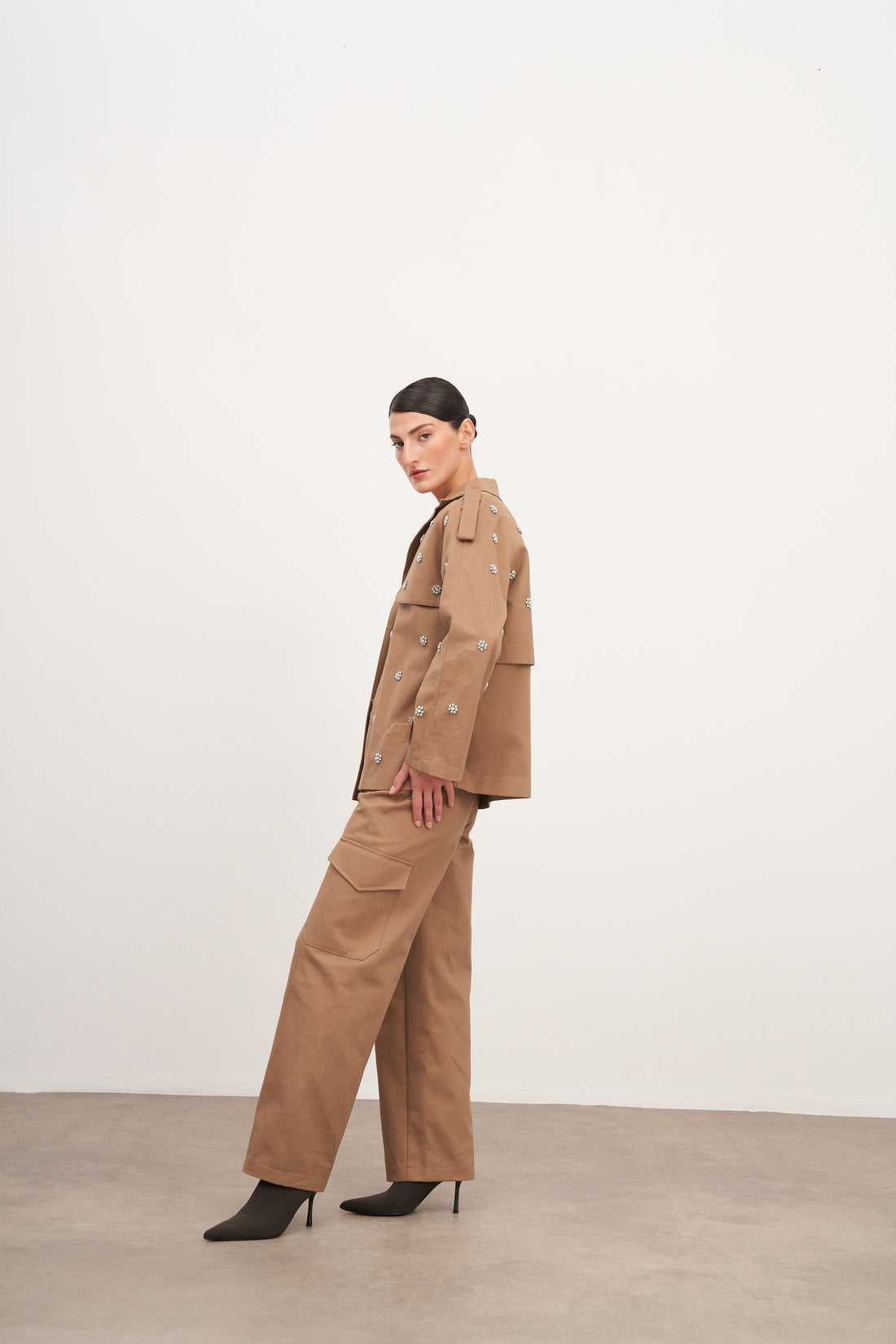Acı Kahve Süet Deri ve Cep Detaylı Ceket
