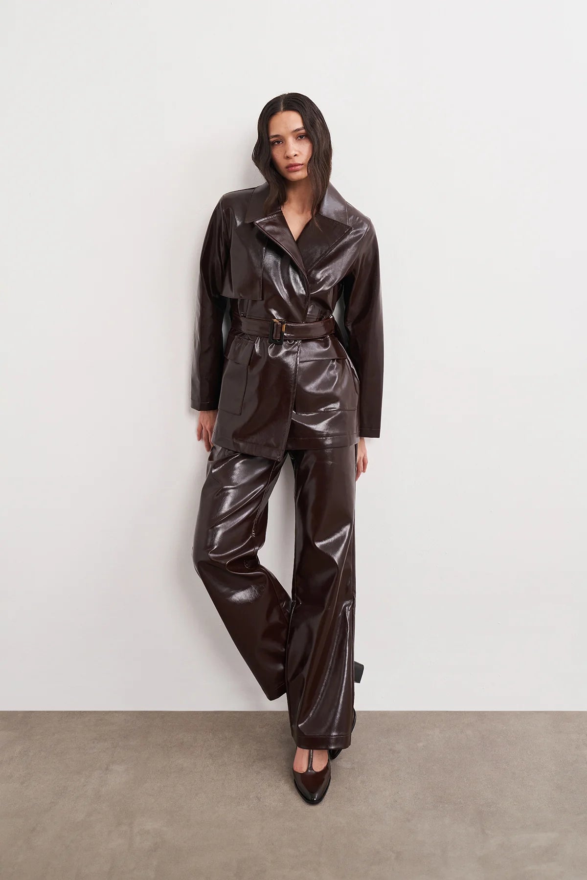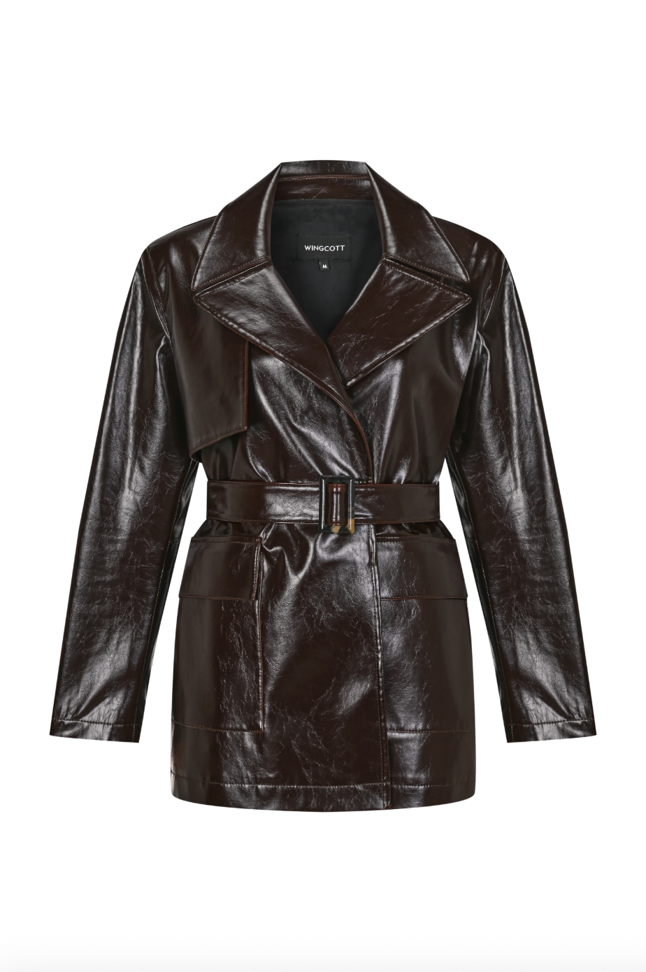 WINGCOTT Acı Kahve Kemerli Cep Detaylı Damarlı Deri Ceket