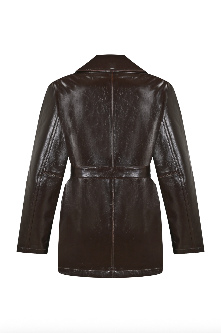 Acı Kahve Kemerli Cep Detaylı Damarlı Deri Ceket