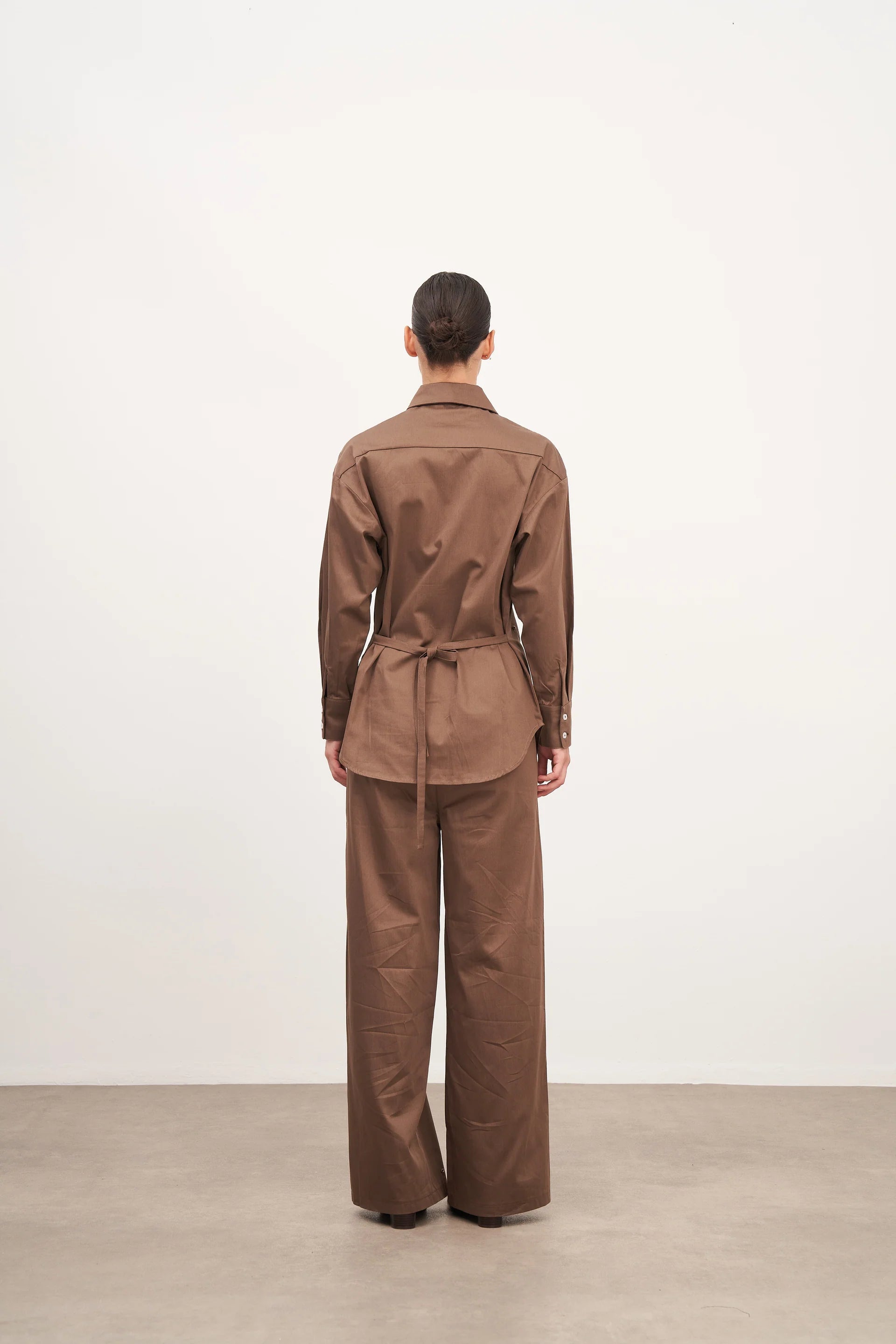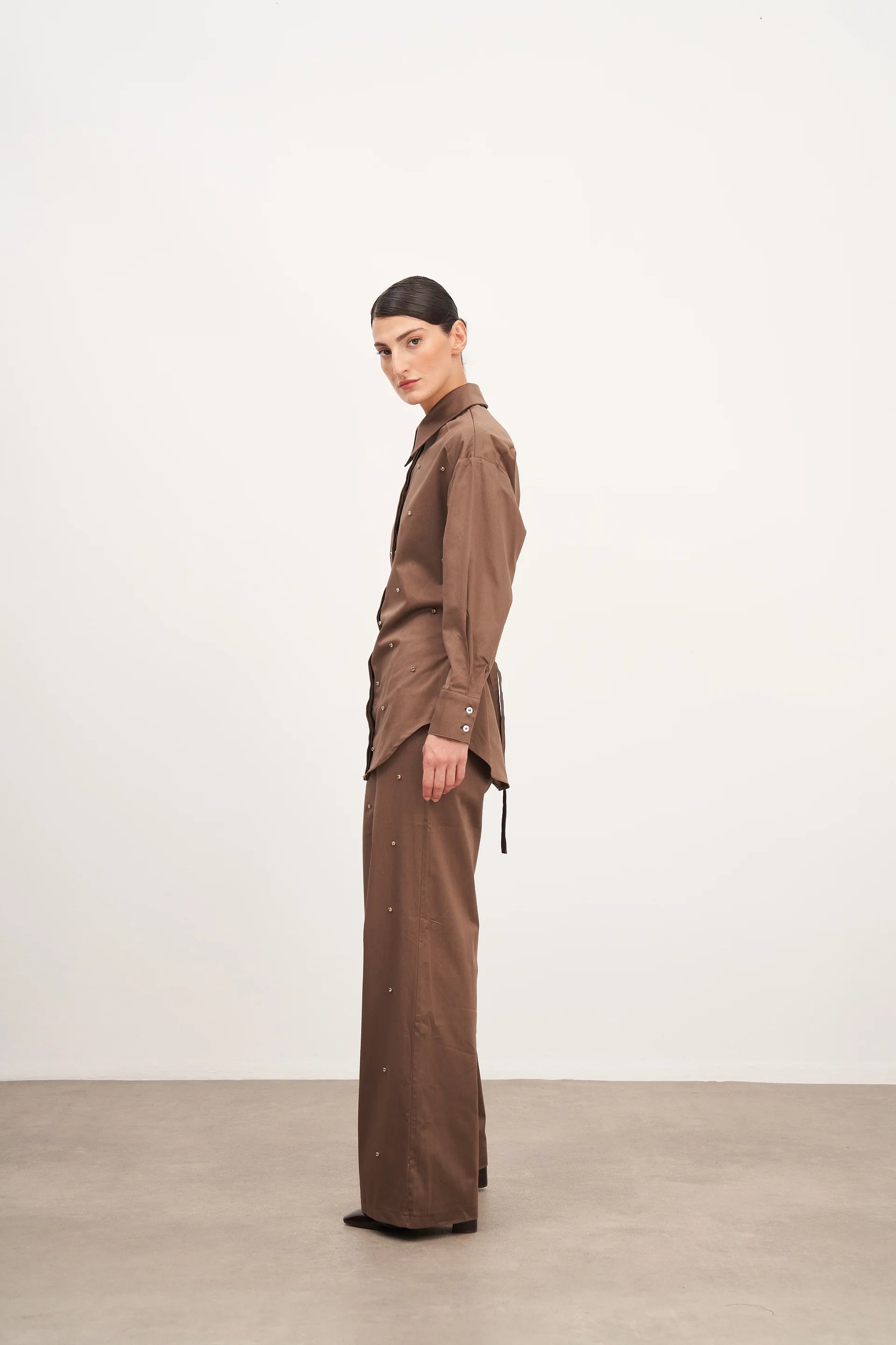 Kahverengi Taş İşlemeli Rahat Pantolon