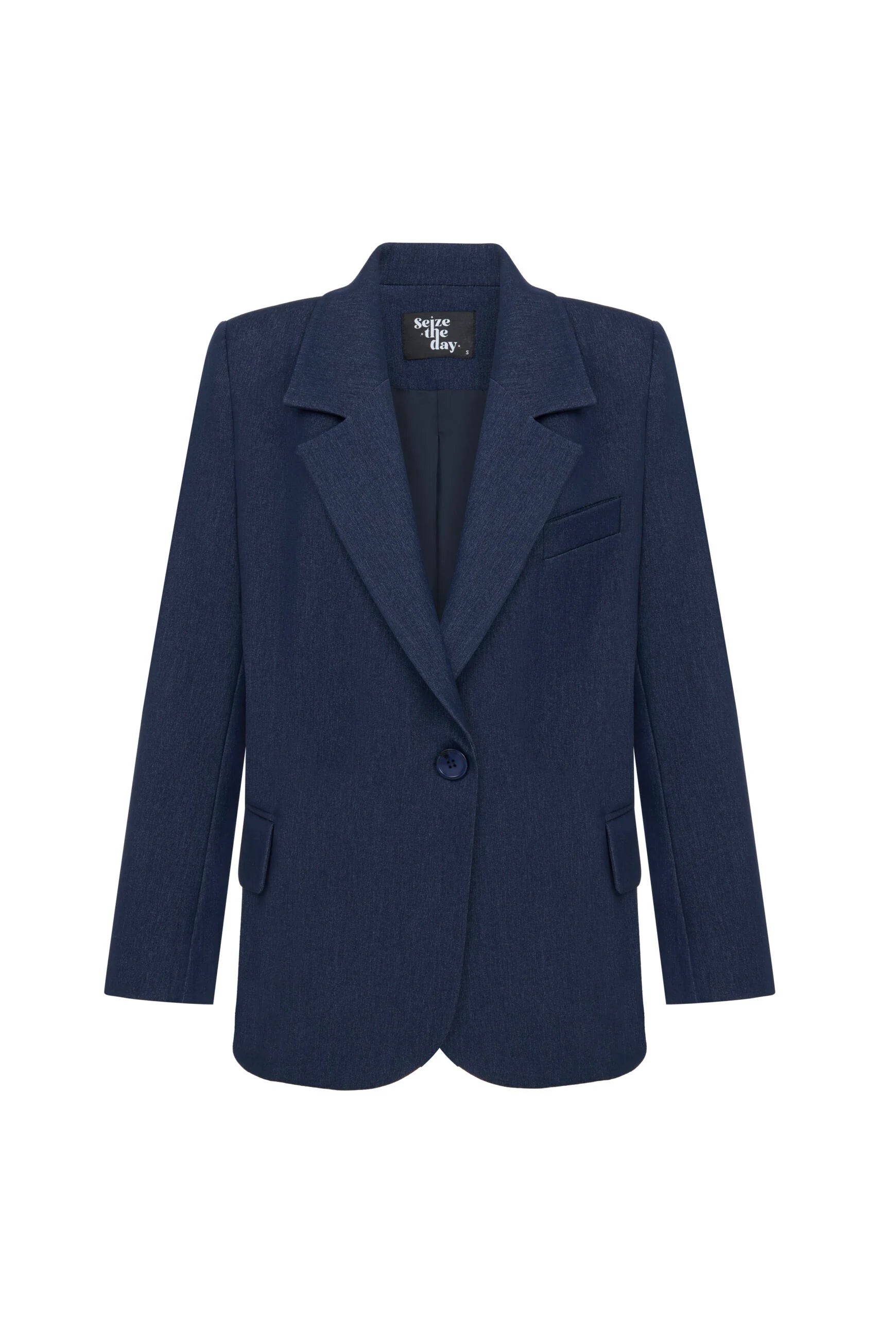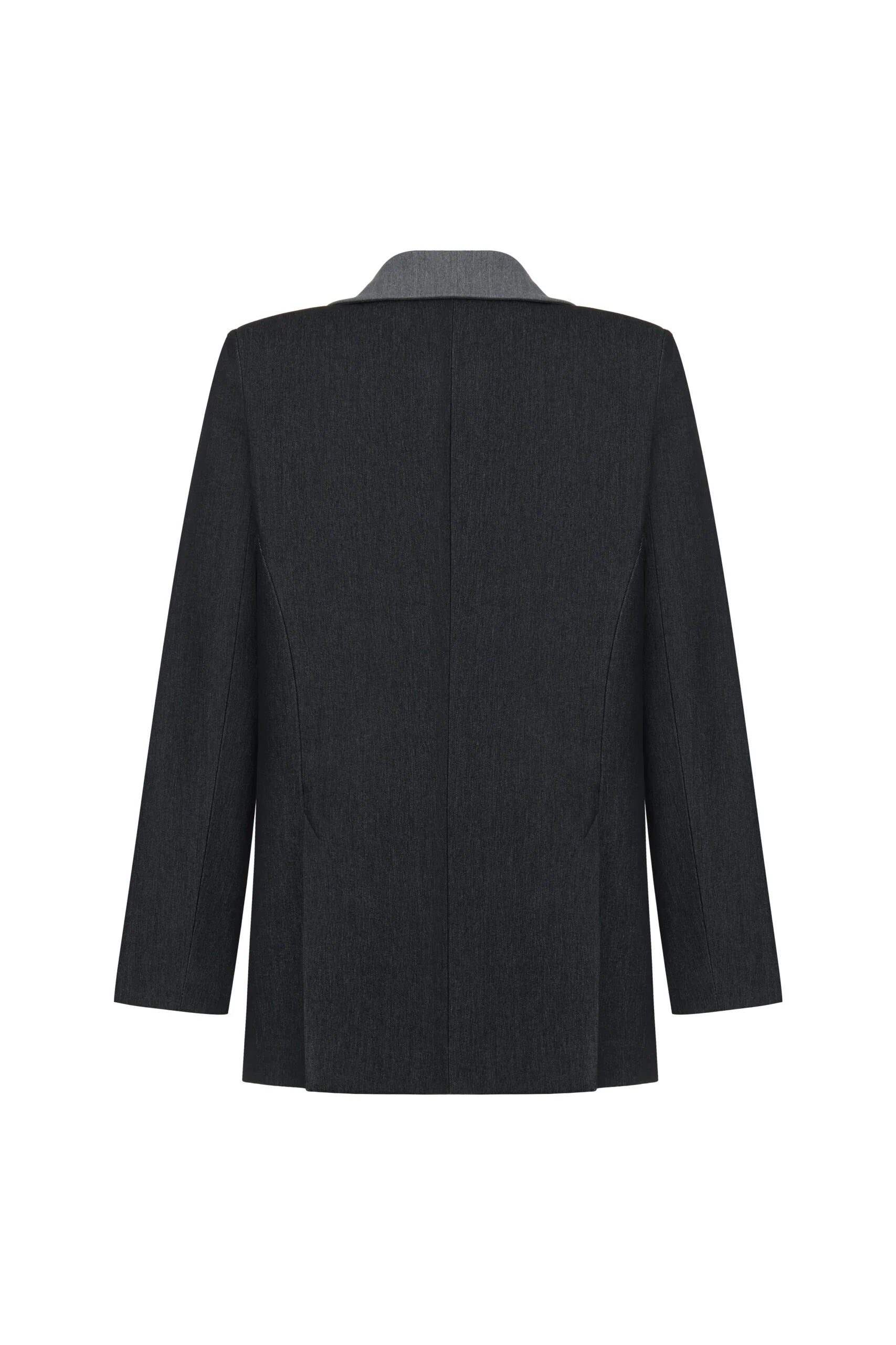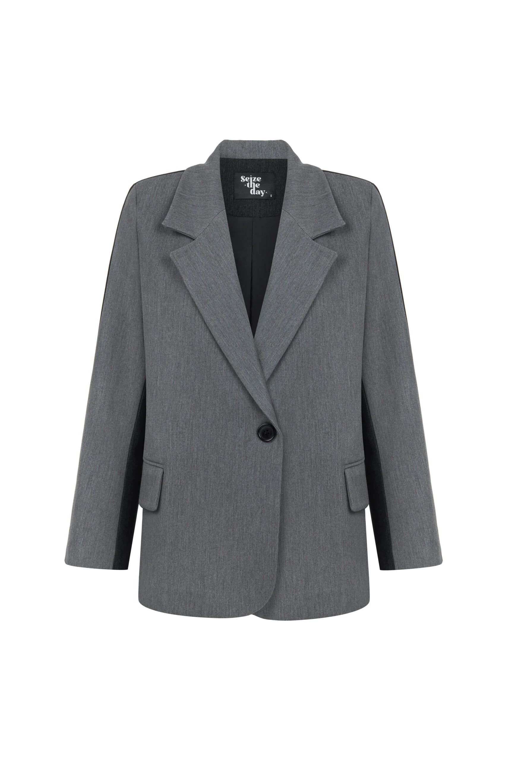 Lisa Blazer, tek düğme oversize kesimi ve arka çift yırtmaç detayıyla modern bir stil sunar. Gri ve antrasit parça detaylı tasarımıyla hem casual hem profesyonel kombinlere uyum sağlar.