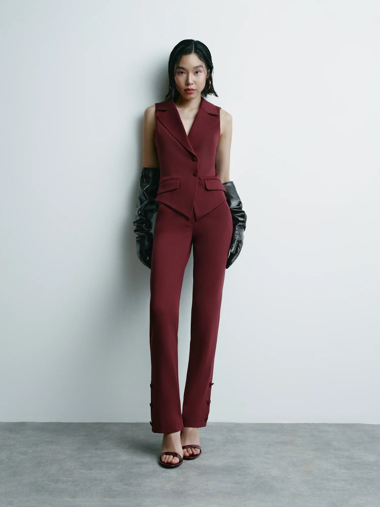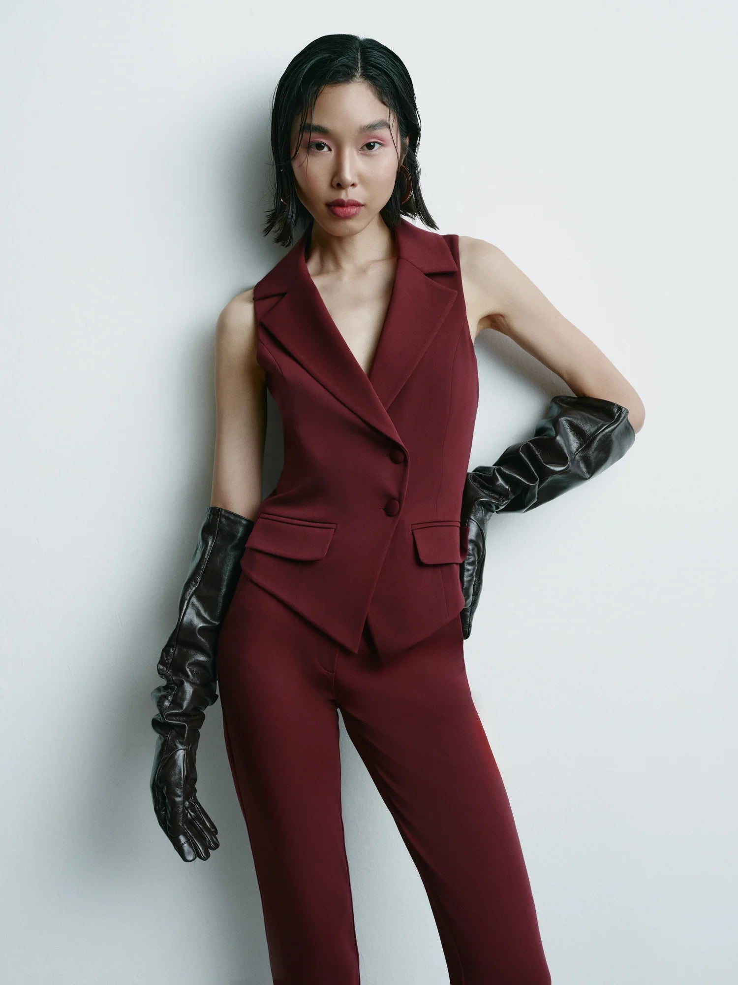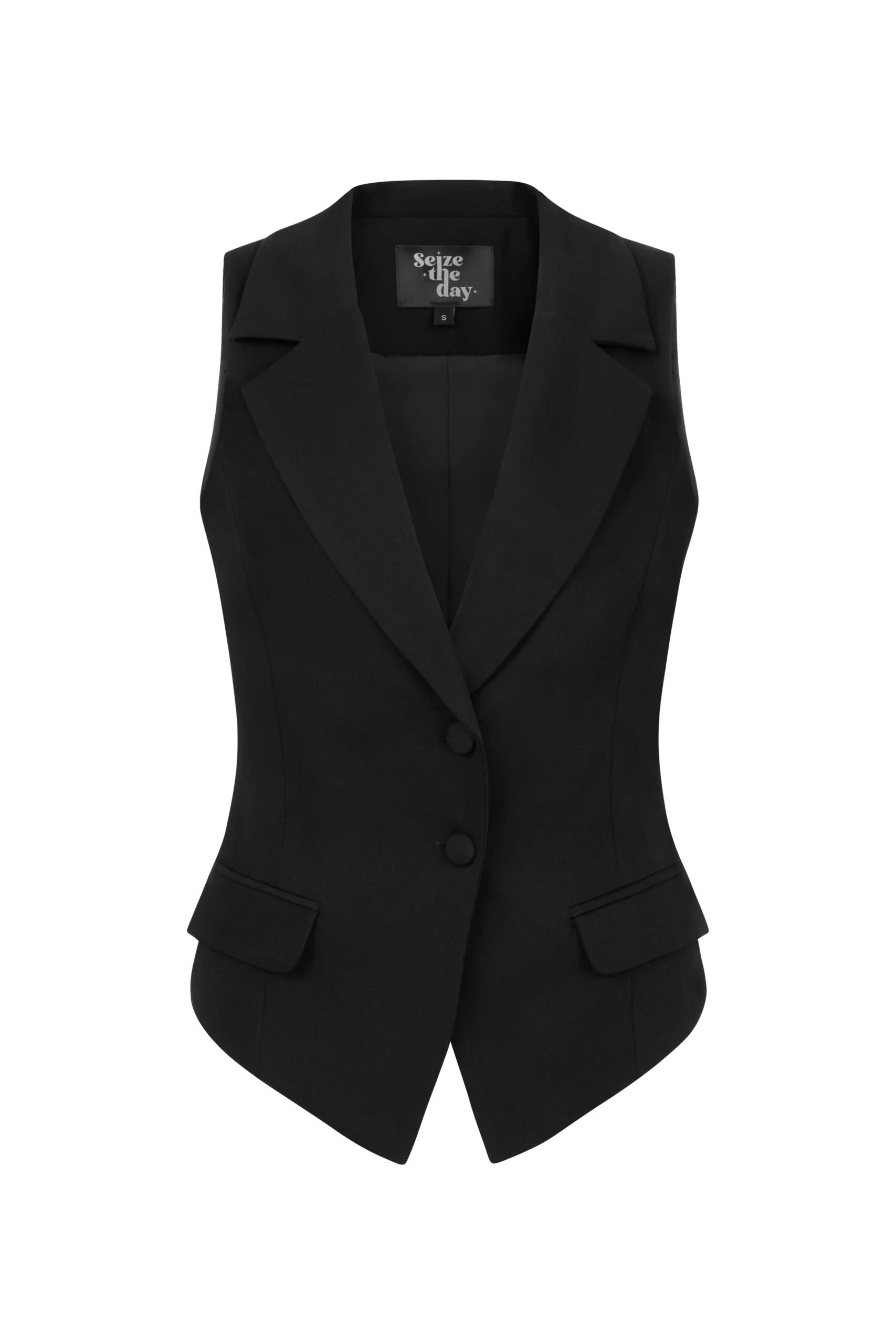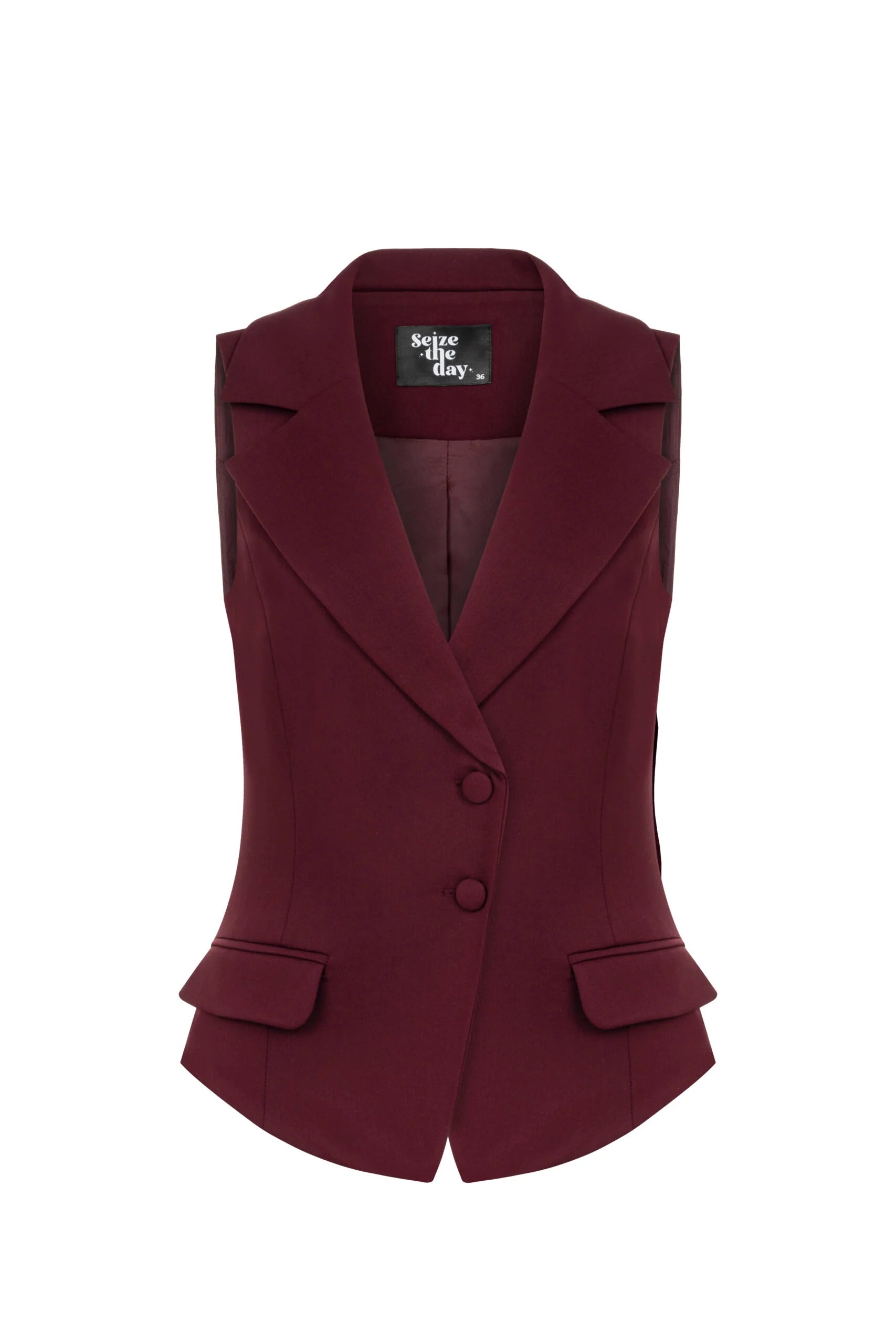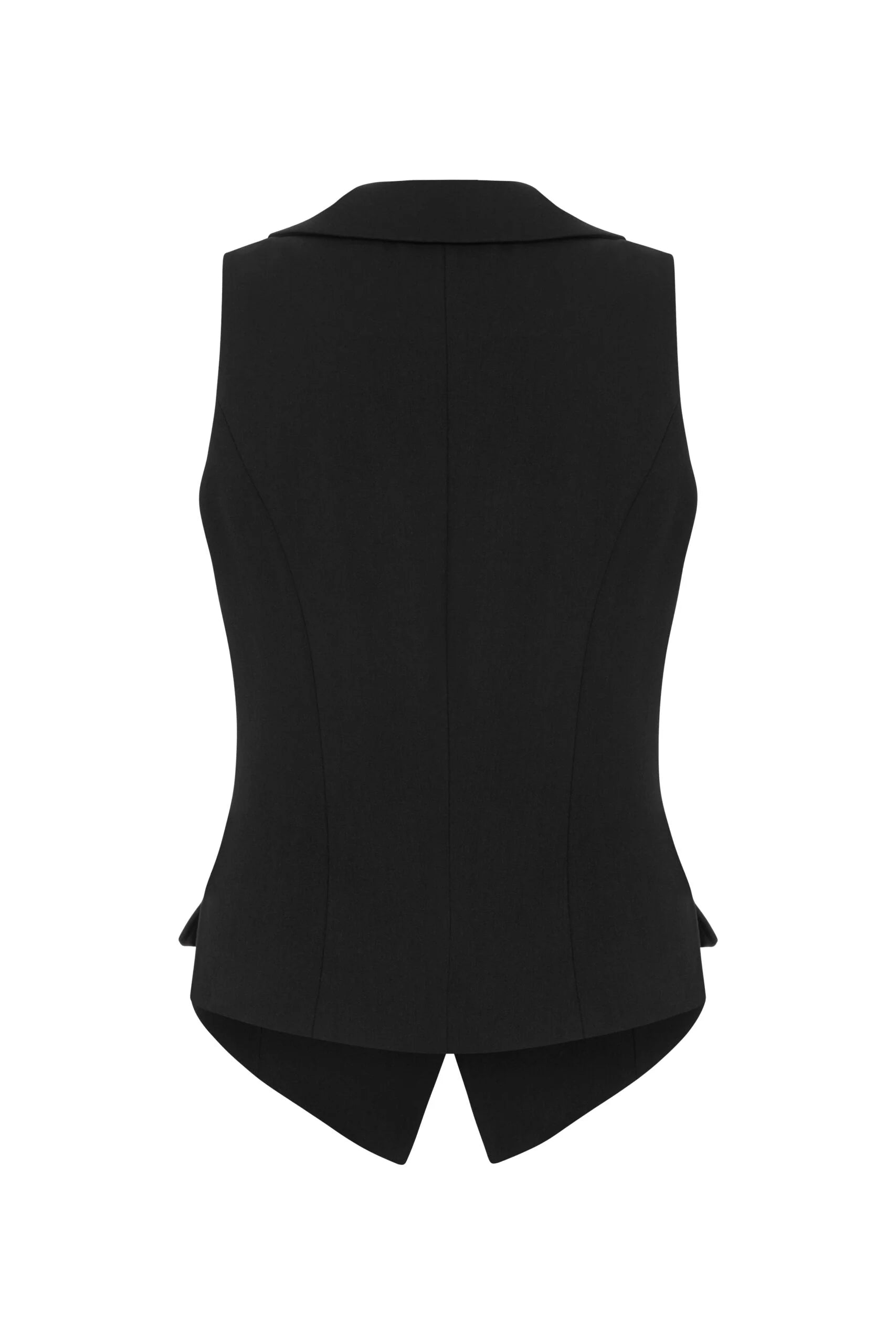 Luna Yelek, kruvaze kapama ve kumaş kaplama düğmeleriyle sofistike bir şıklık sunar. Saten astarıyla konforlu bir kullanım sağlar. Her kombine zarif bir dokunuş katar.