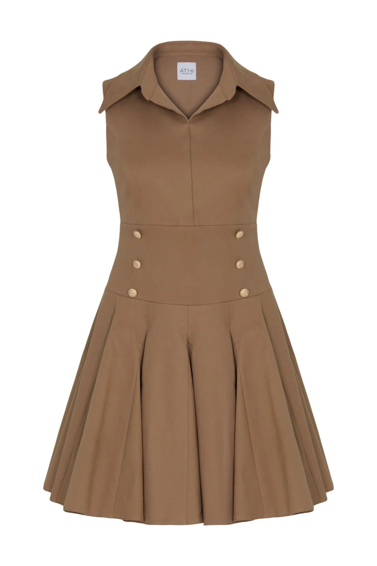 Gold düğme detaylı, gömlek yaka, fermuar kapama şık & günlük kullanıma uygun elbise.