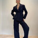 Klasik çizgili takımı modern bir yorumla yeniden tanımlayan bu takım; yapılandırılmış formu ve rahat kesimiyle güçlü ama sade bir görünüm sunar. Ceket arkasındaki büzgü detayı beli zarifçe vurgularken, düz kesim cargo pantolon takıma çağdaş bir hava katar.