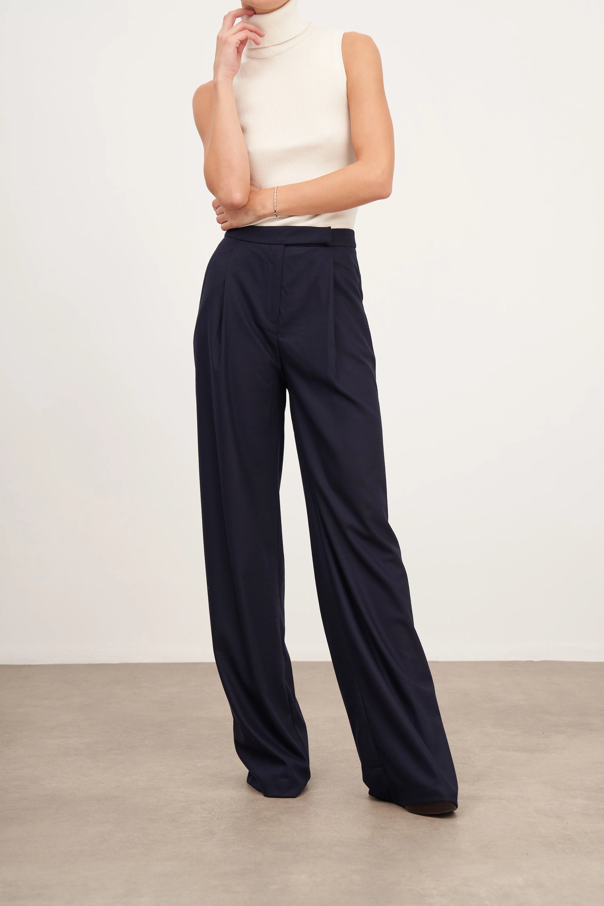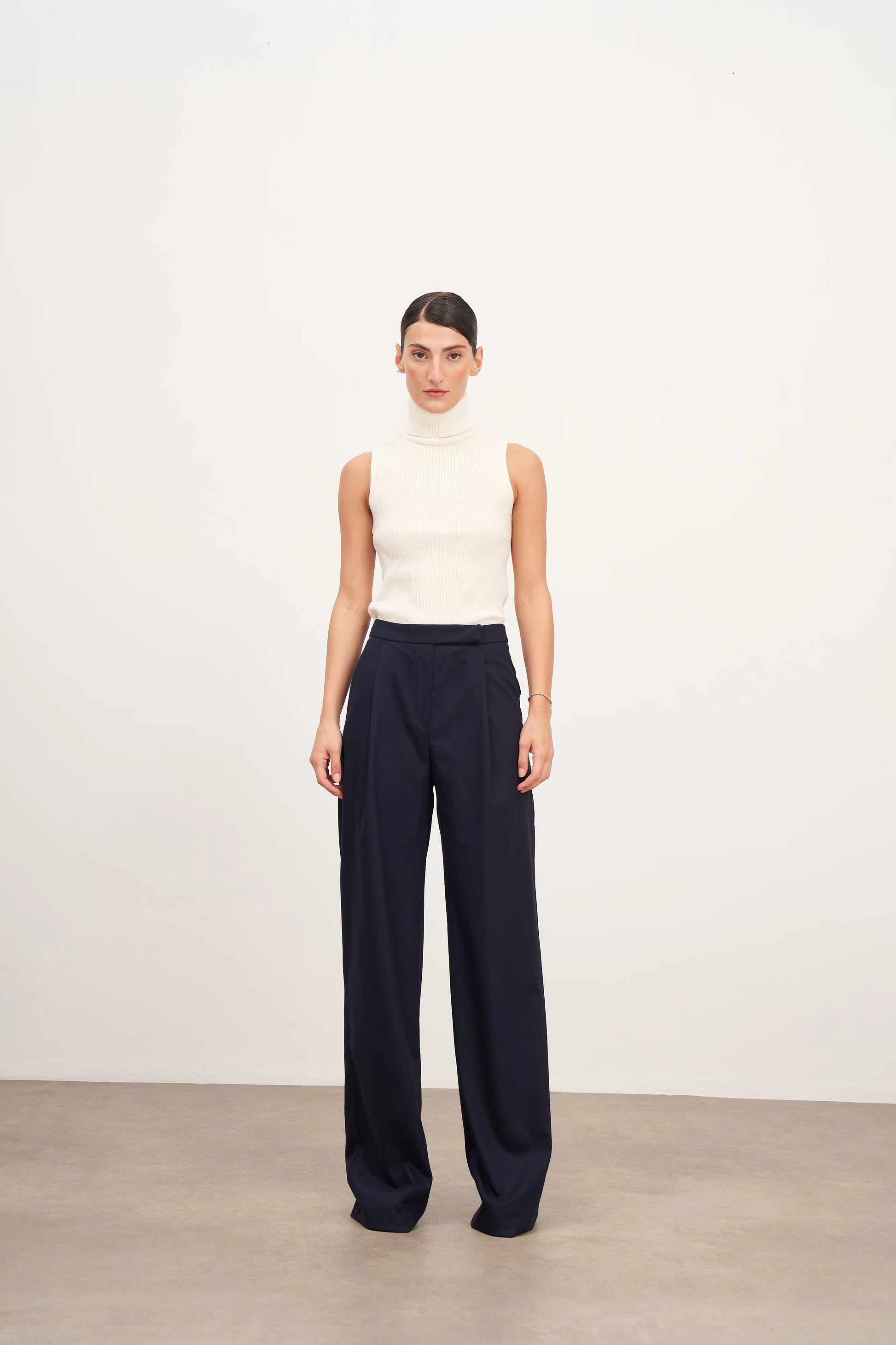 Pileli ve Yün Görünümlü Geniş Paça Pantolon