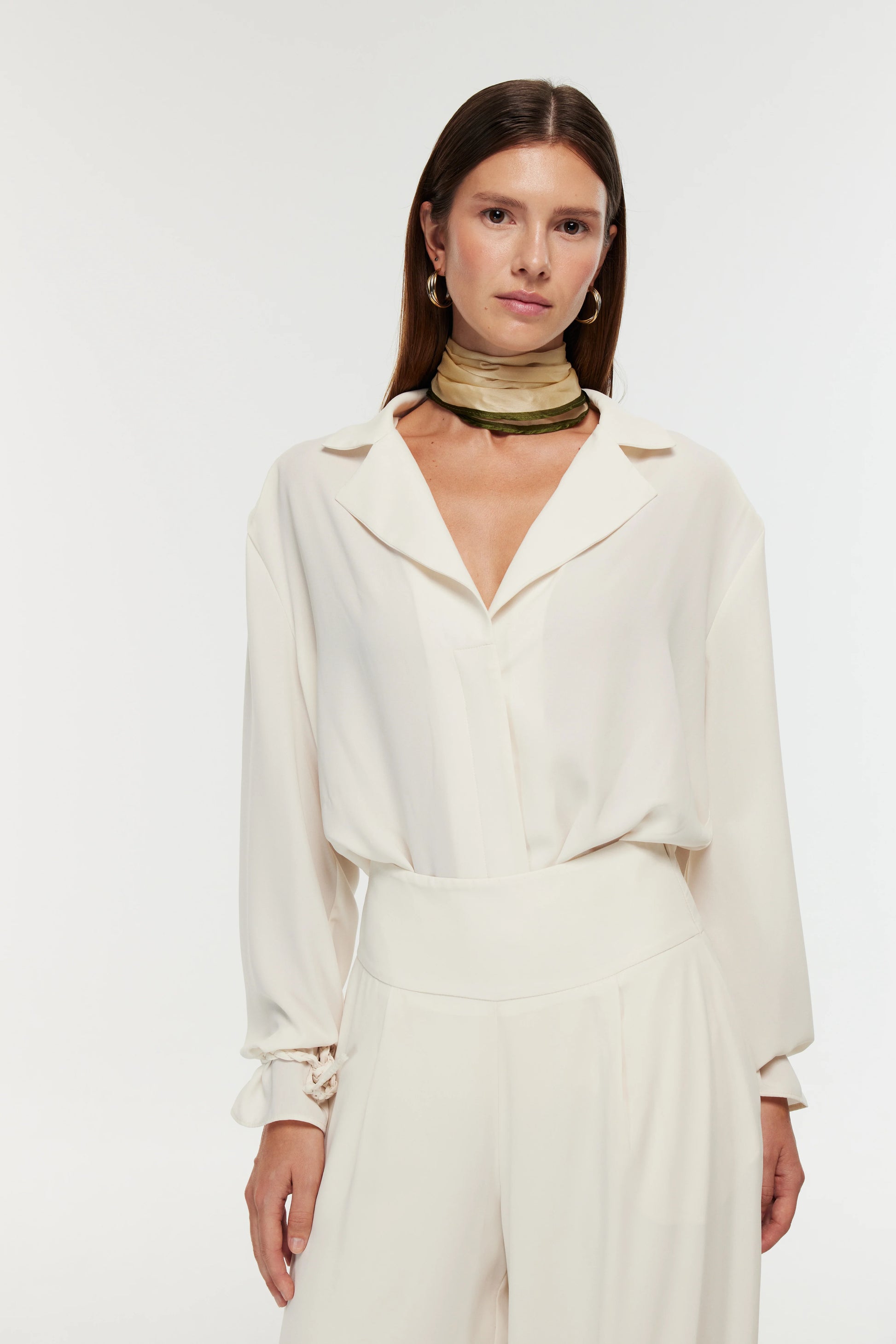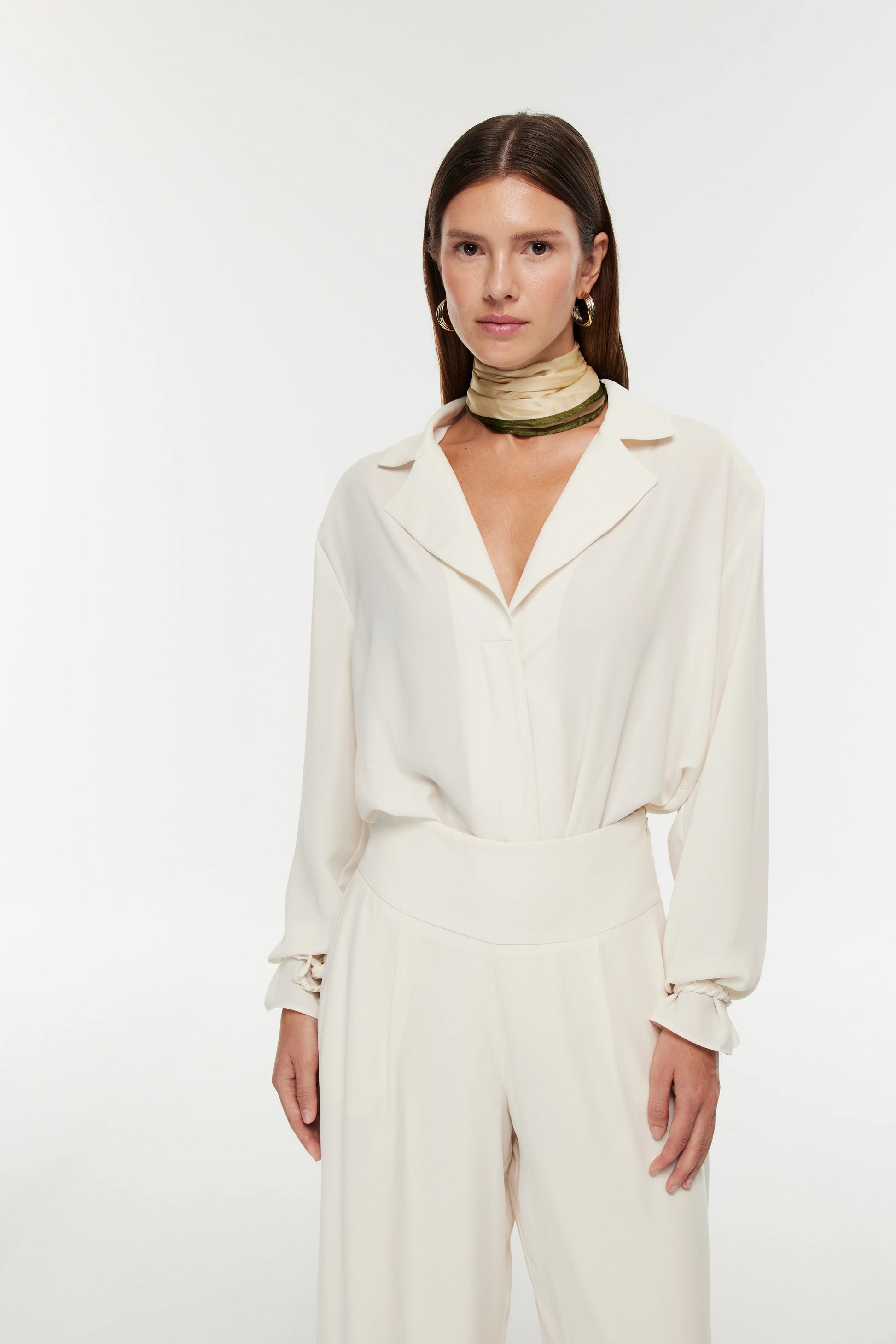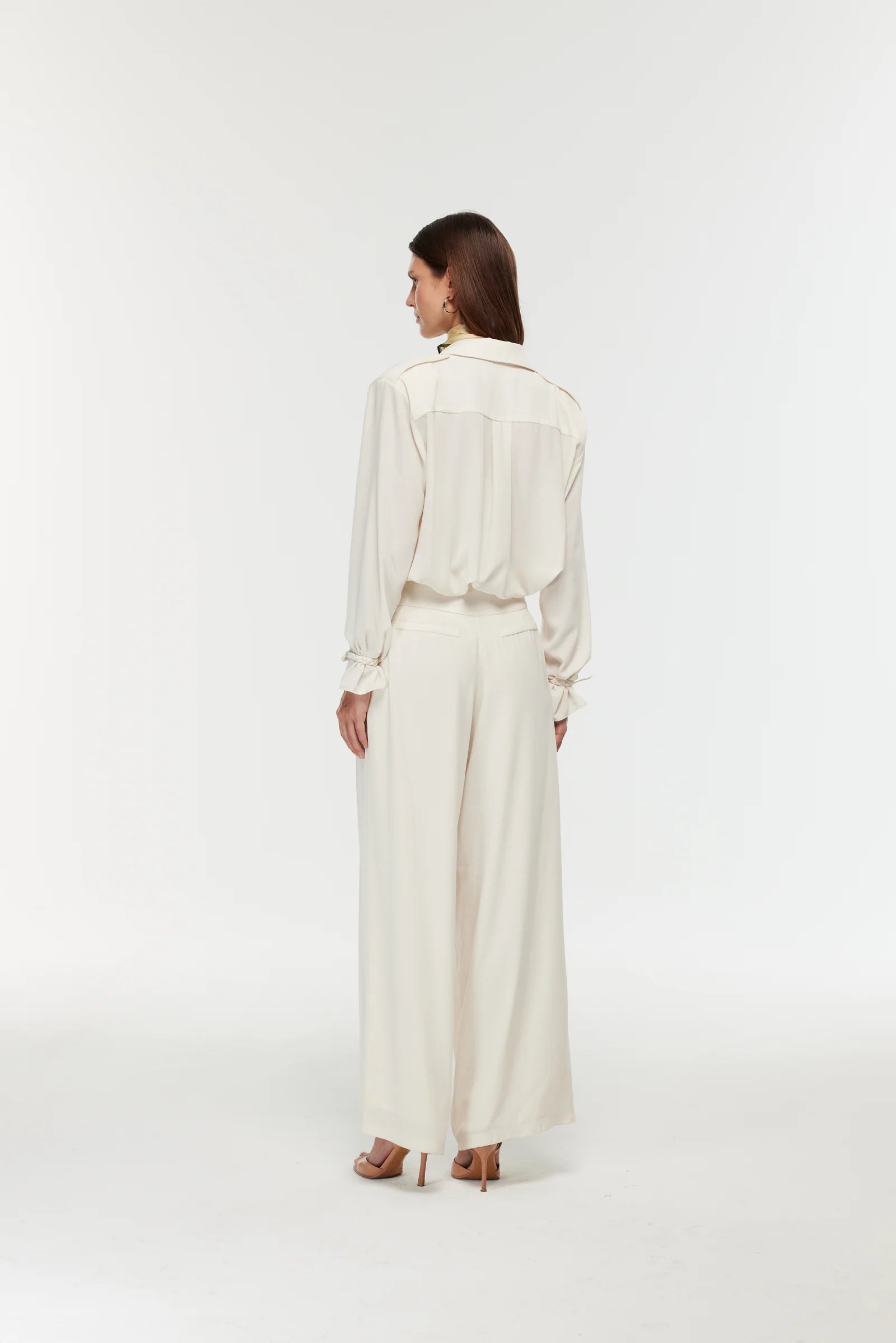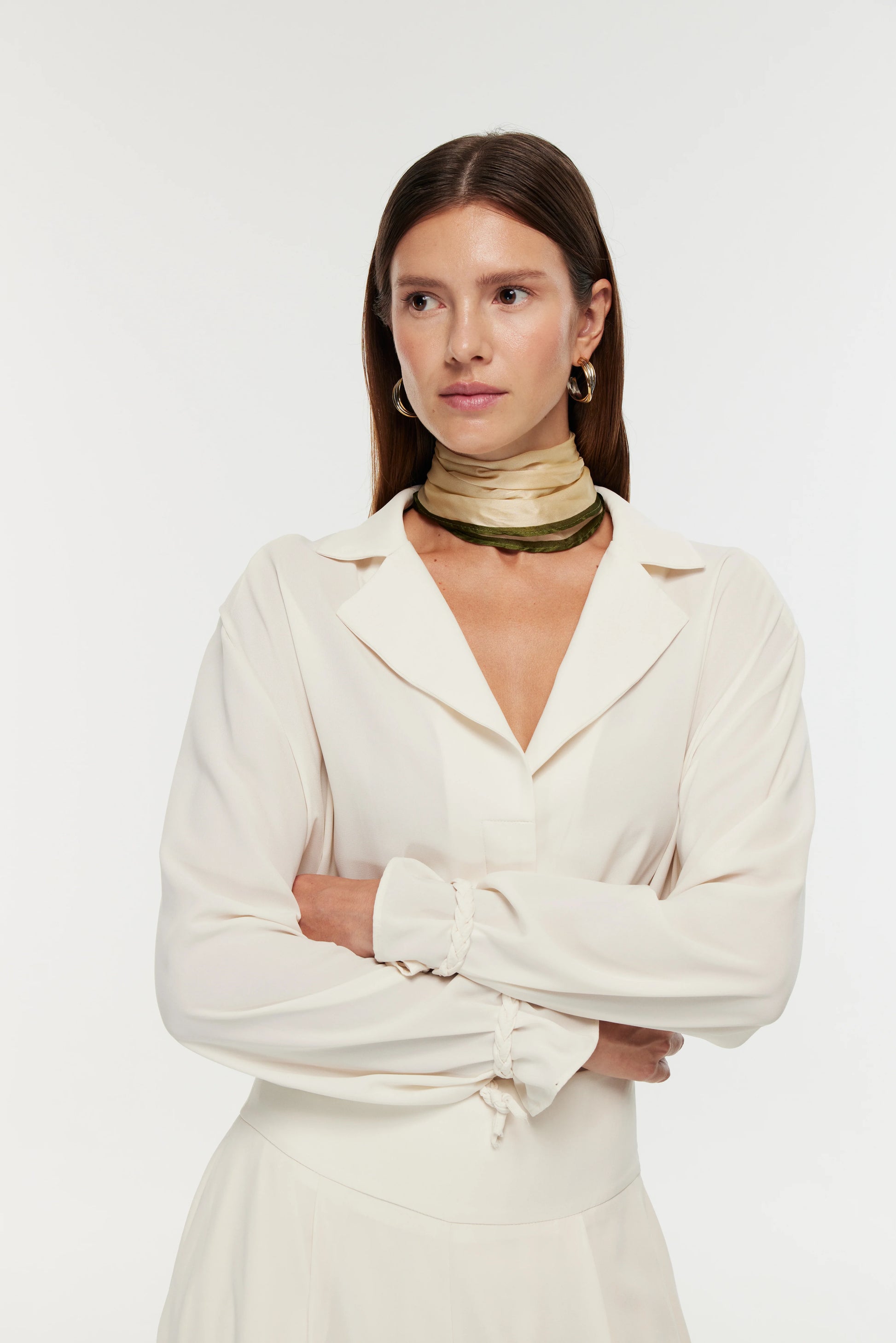 Ürün Bilgisi: Omuzları apoletli,vatkalı yakalı, bol kesim, kolları örgü bağlama detaylı gömlek.
