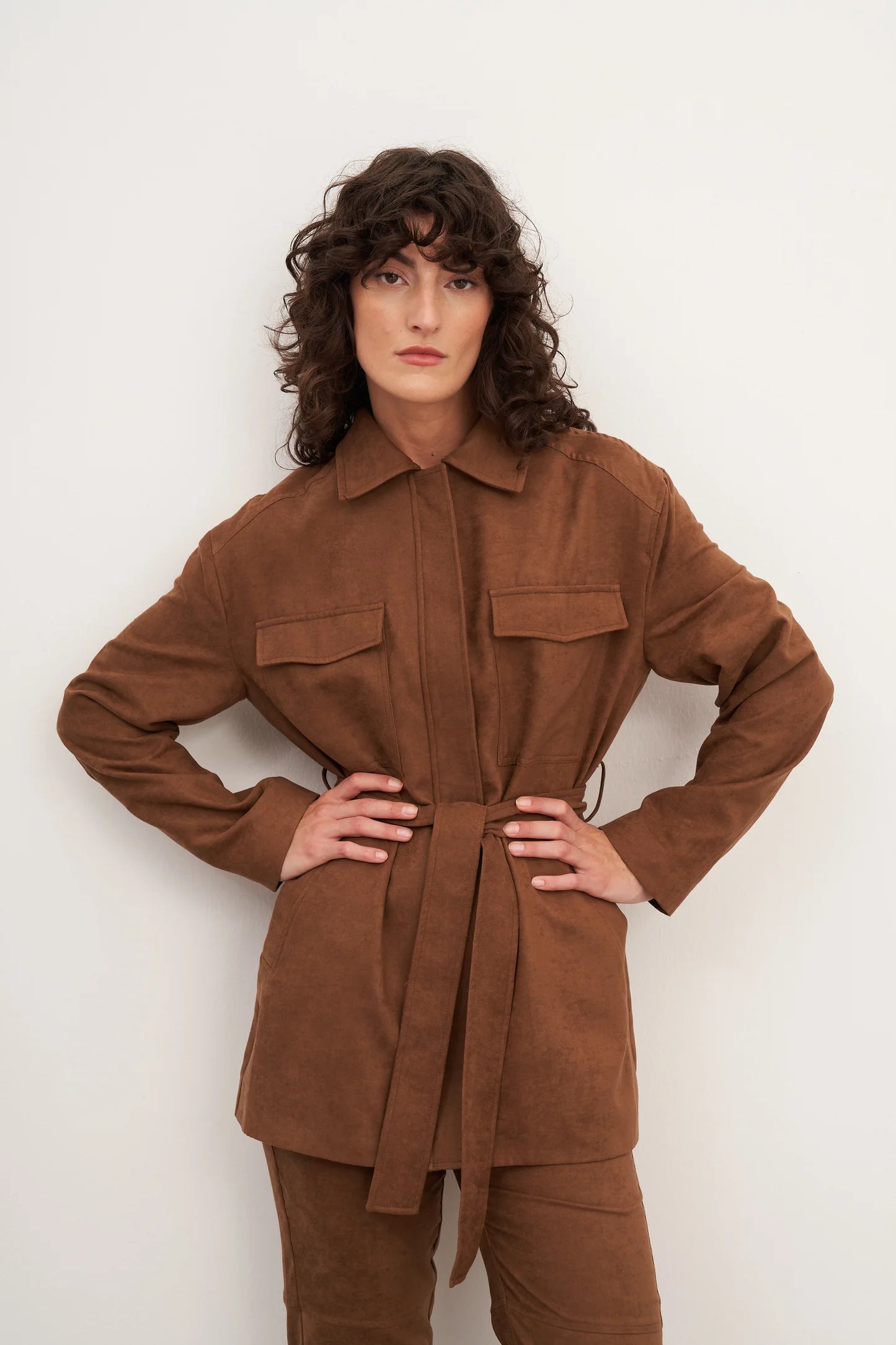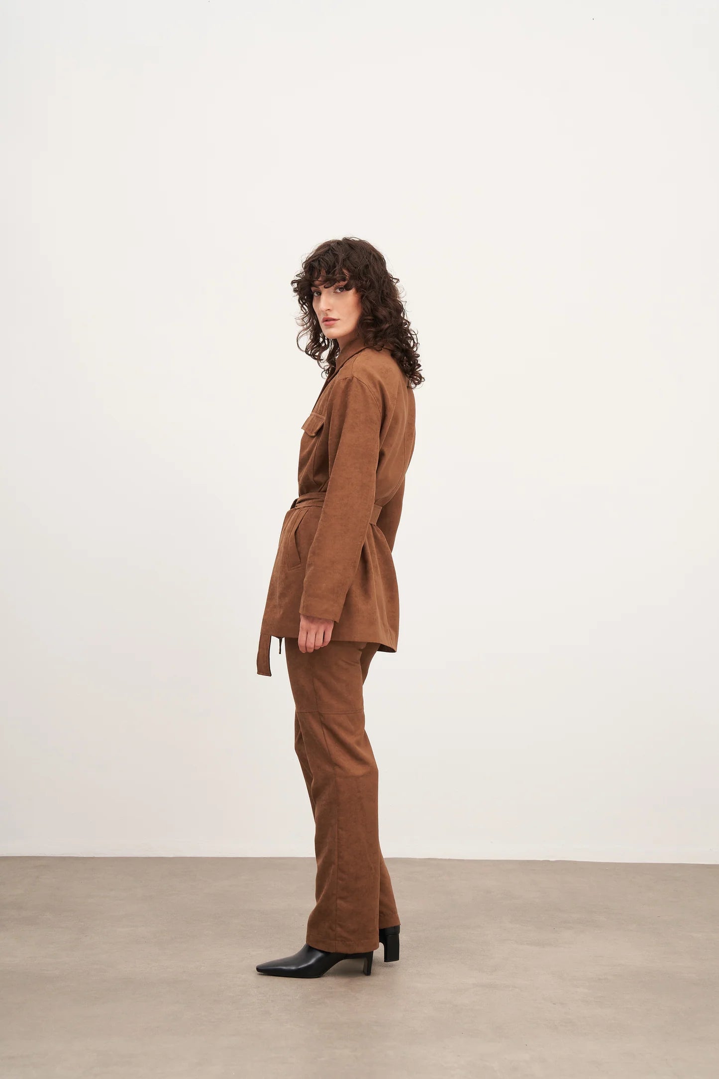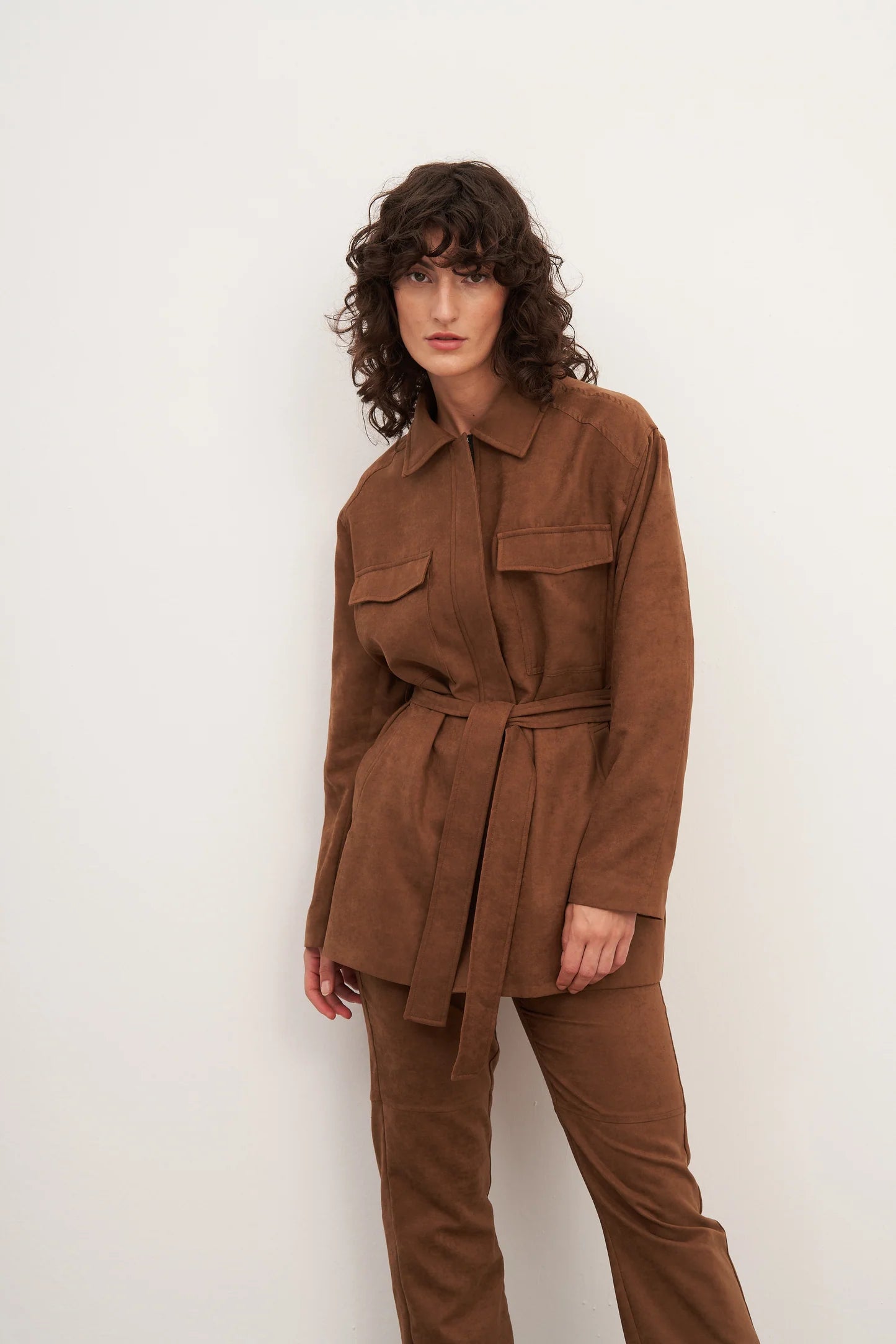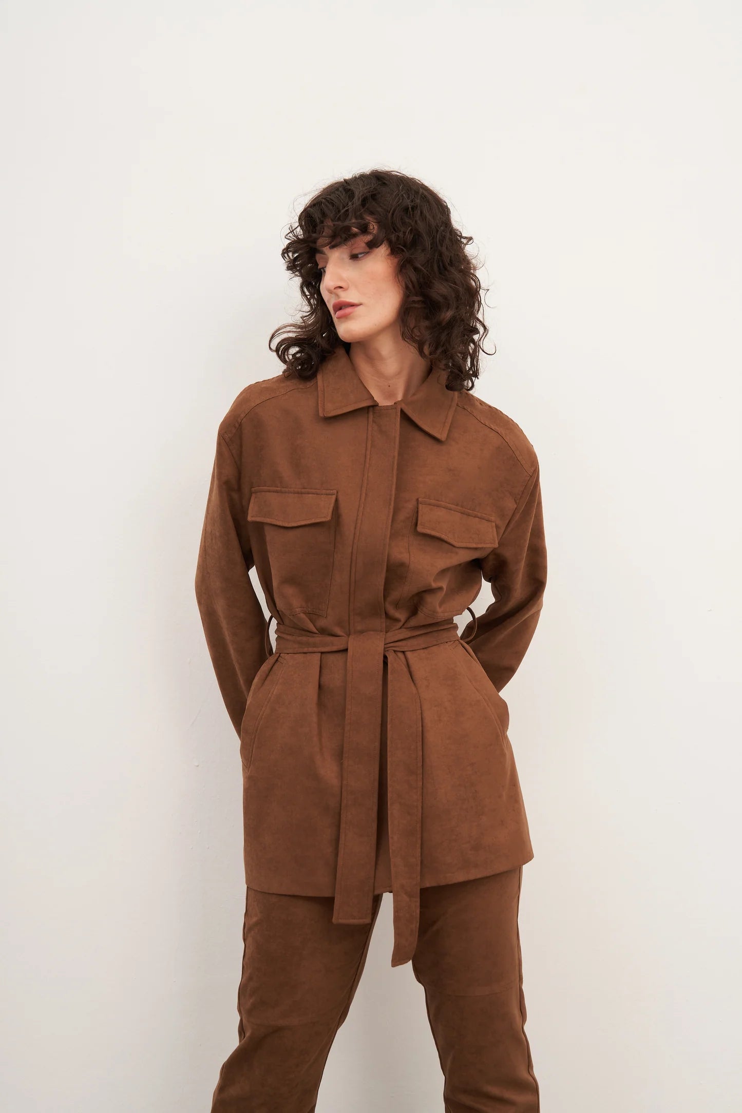 Taba Süet Bağlama ve Cep Detaylı Ceket